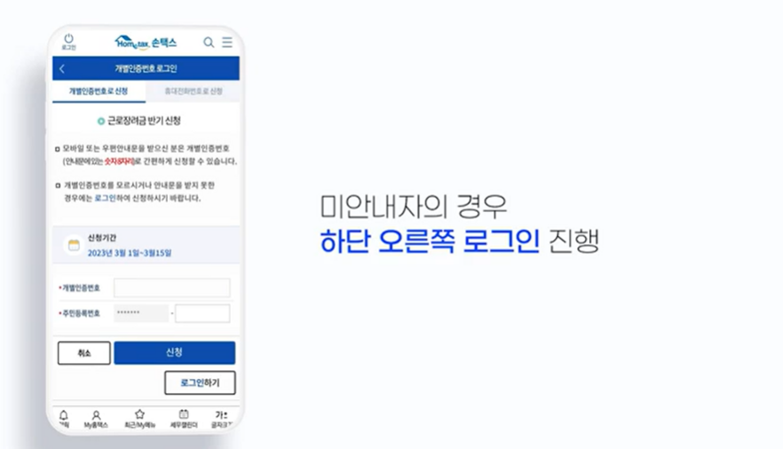 저는 여태 이번을 포함하여 근로장려금을 두 번째 신청해 보는데요. 한 번은 안내문을 받았지만, 이번에는 받지 못했습니다. 하지만, 안내문을 받았든 안 받았는 우선은 홈택스(http://www.hometax.go.kr)에서 로그인한 후에 확인해 보는 방법이 제일 확실합니다.