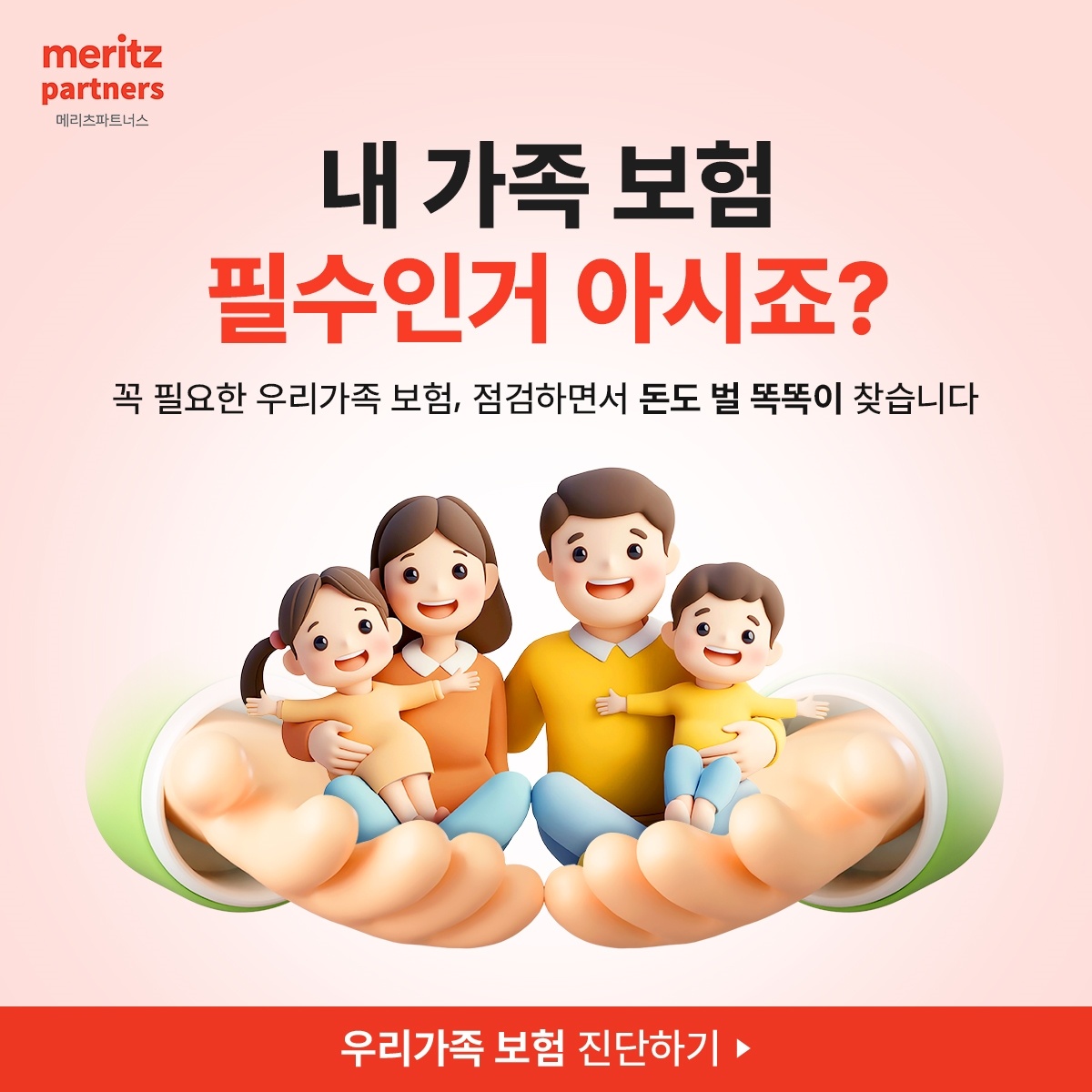 보험은 이제 더 이상 지출이 아닙니다. 스스로 점검하고 수익까지 창출할 수 있는 메리츠 파트너스를 통해 새로운 수익 모델을 경험해보세요. 지금 바로 상담 신청으로 첫 걸음을 내딛는다면, 보험에 대한 걱정도, 소득에 대한 고민도 해결할 수 있습니다.