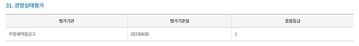 우암 새마을금고의 경영안정성 등급은 1등급이 나옵니다.