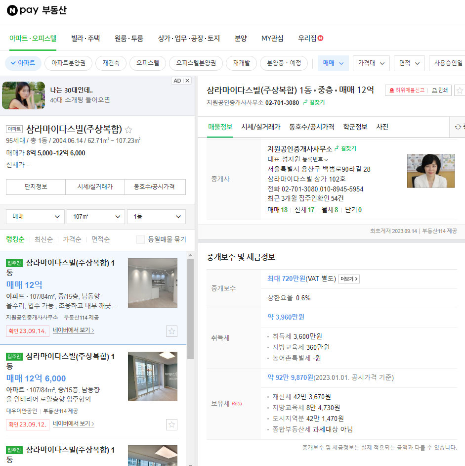 단, 네이버 부동산에서는 1가구 1주택자를 기준으로 세금이 계산되어 있으니 이점 참고 하시기바랍니다.