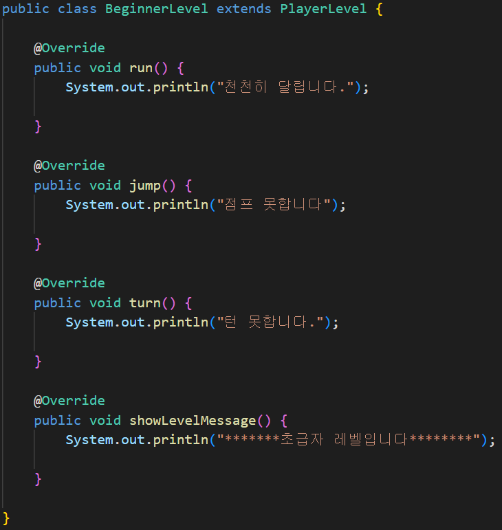 BeginnerLevel ; 이를 응용해서 중급자, 고급자 코드를 짜면 되겠습니다.