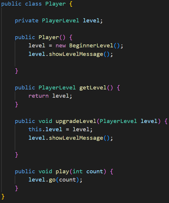 3) Player는 한번에 하나의 레벨 상태만을 가질 수 있습니다.