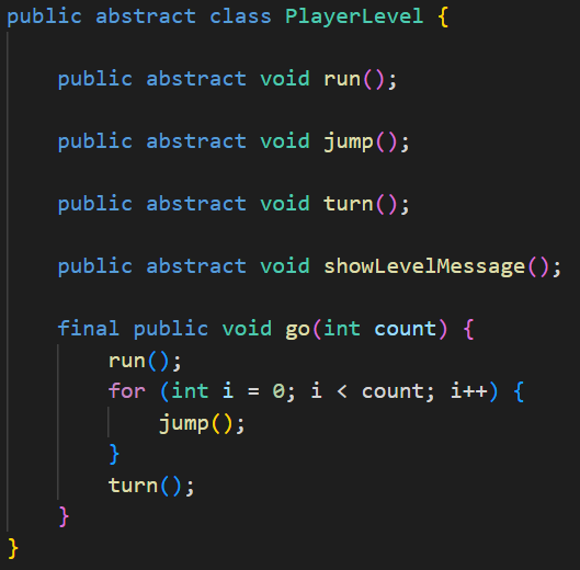 - 추상 메서드나 구현된 메서드를 활용하여 코드의 흐름(시나리오)을 정의하는 메서드이다.
