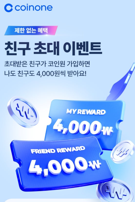 코인원 앱을 설치 후 회원가입과 본인인증, 고객확인(KYC)을 완료하고, 초대코드 OCHD0VZ4를 입력하면 이벤트에 참여할 수 있습니다.