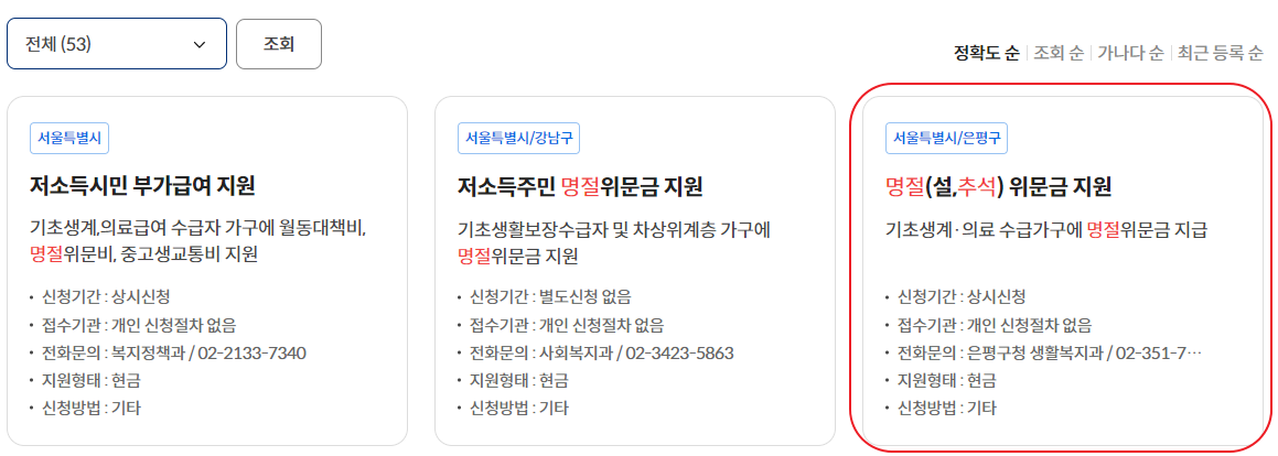 또한, 각 지역별 명절 위로금, 지원금이 나오며 지역 선택을 통해 지역별 확인이 가능합니다.