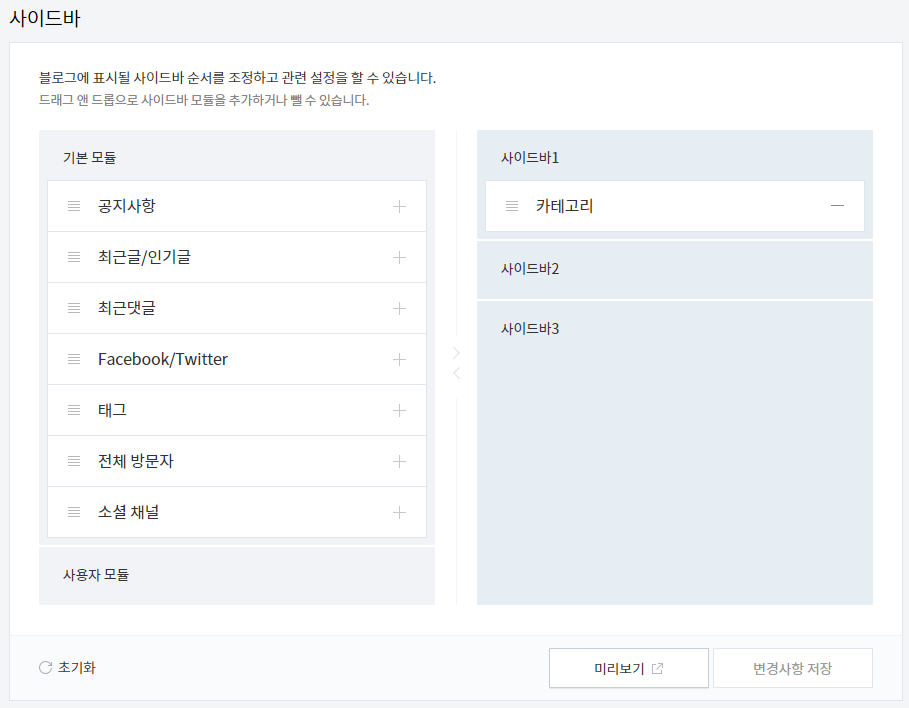 4. 꾸미기 카테고리 내에 있는 사이드바에 들어갑니다.