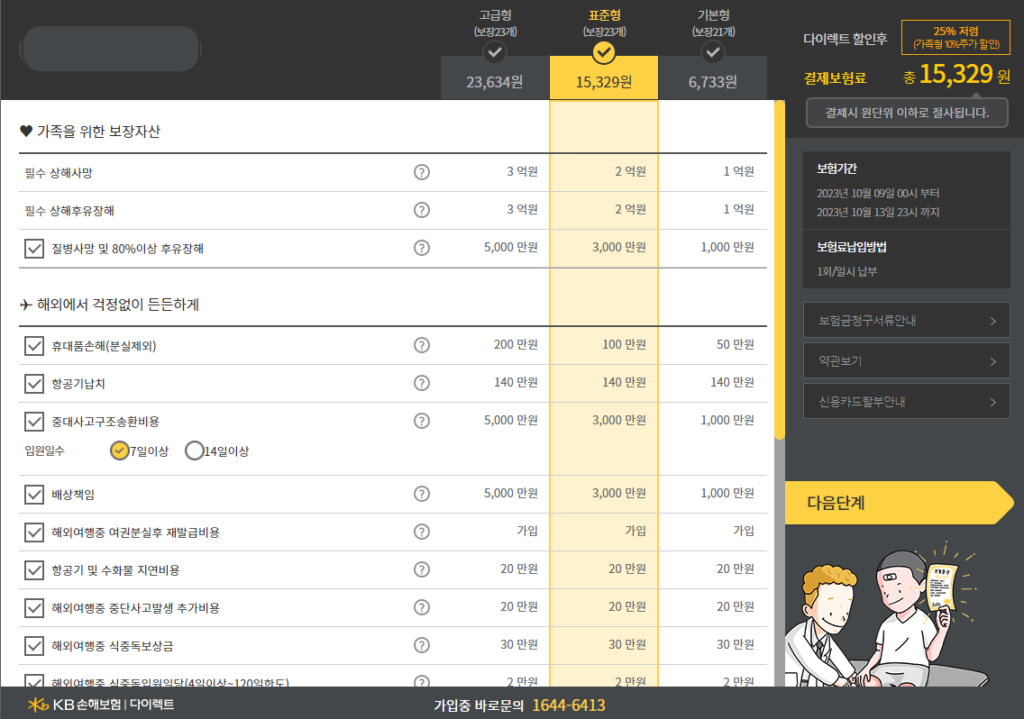 가입가격 비교는 4박 5일 기준으로 하여 작성하였습니다.