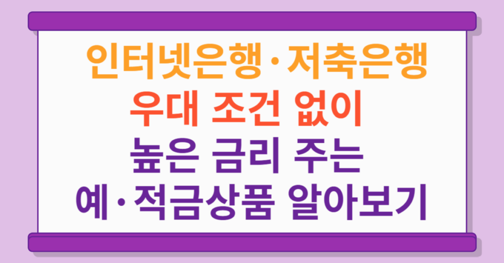 오늘은 인터넷은행과 저축은행에서 우대 조건 없이 높은 금리를 주는 예·적금 상품에 대해 알아보려고 합니다.