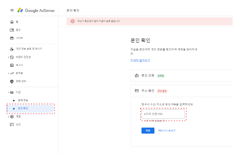 2. 애드센스 핀 번호 등록하는 방법