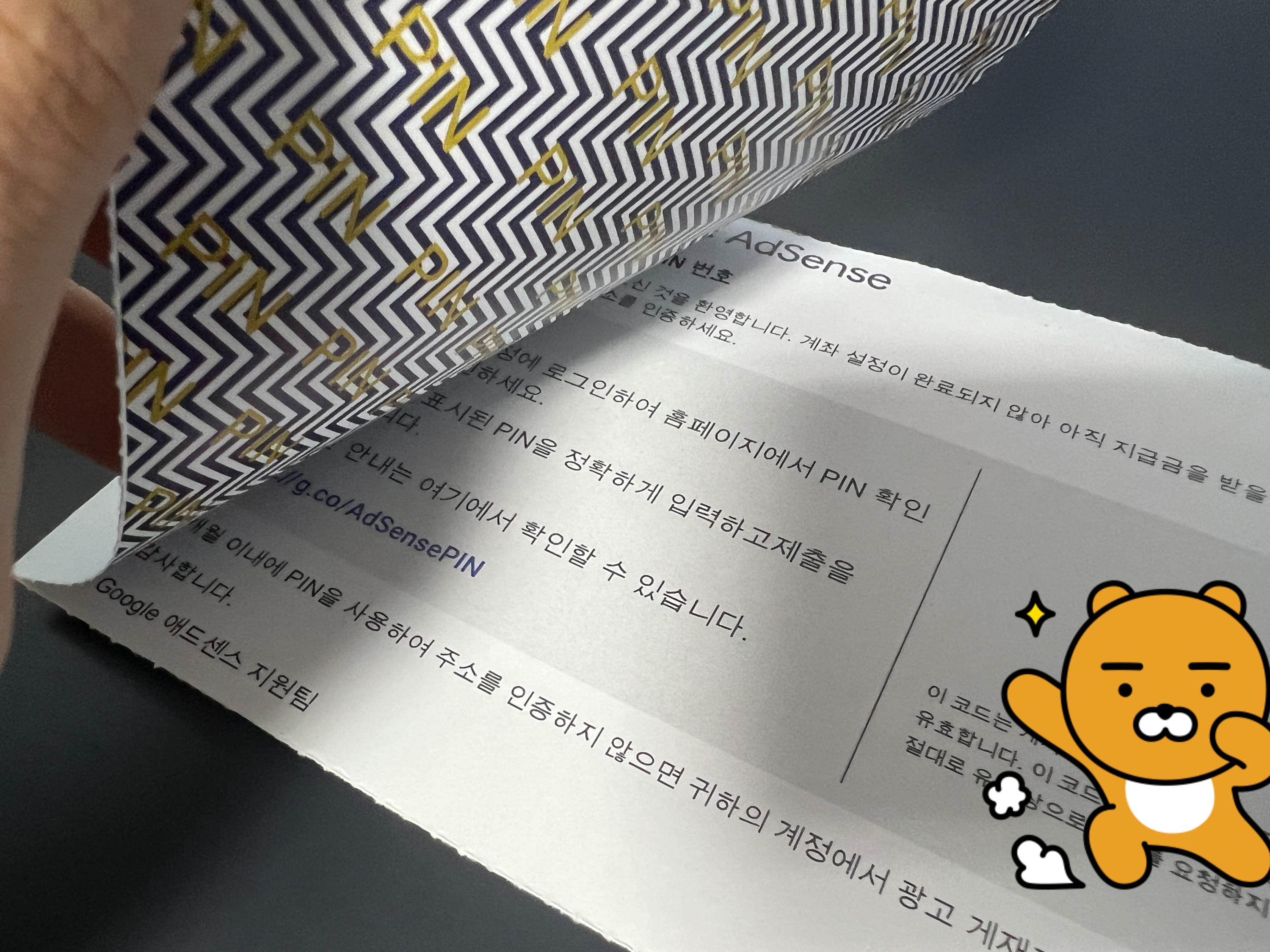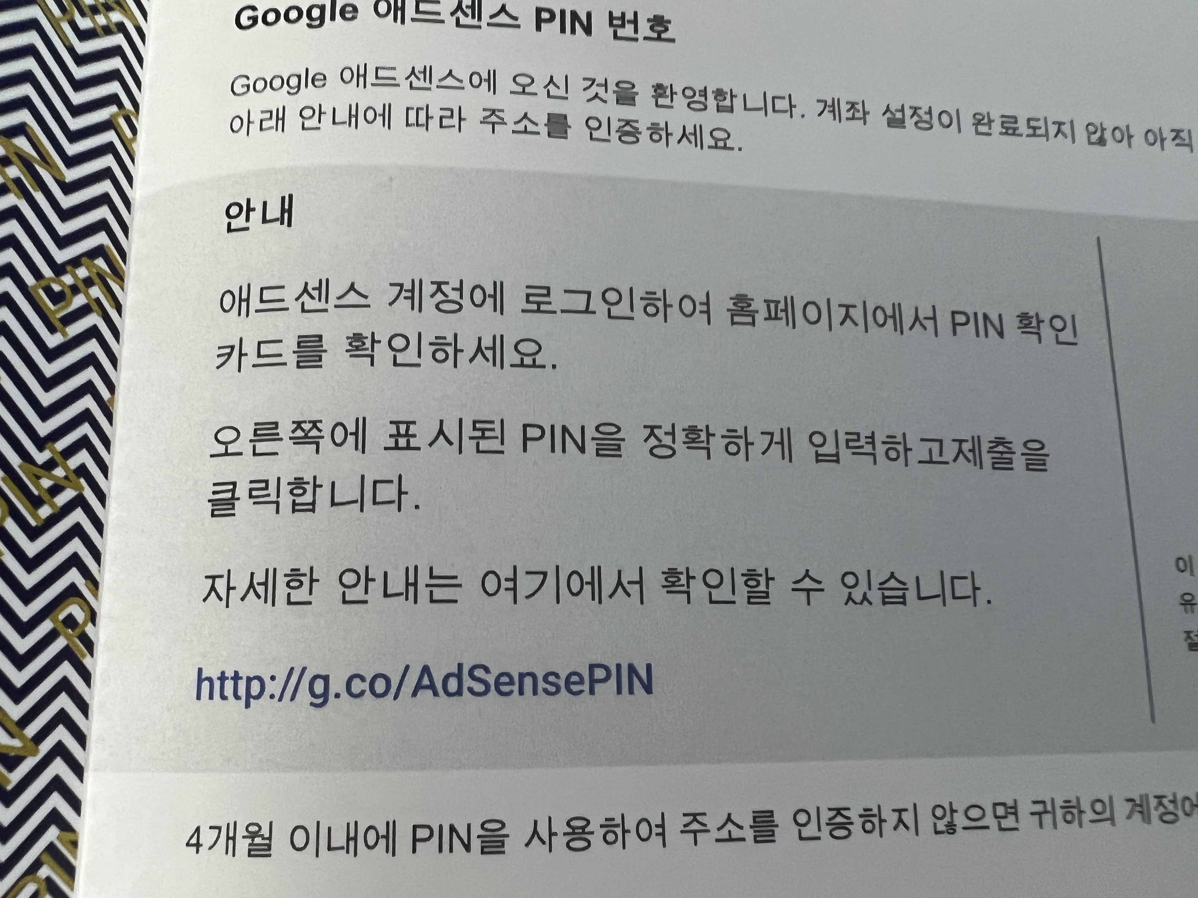 PIN 번호 등록하는 법 - 구글 애드센스 핀번호가 도착하였습니다. 우편함을 확인해주시기 바랍니다.